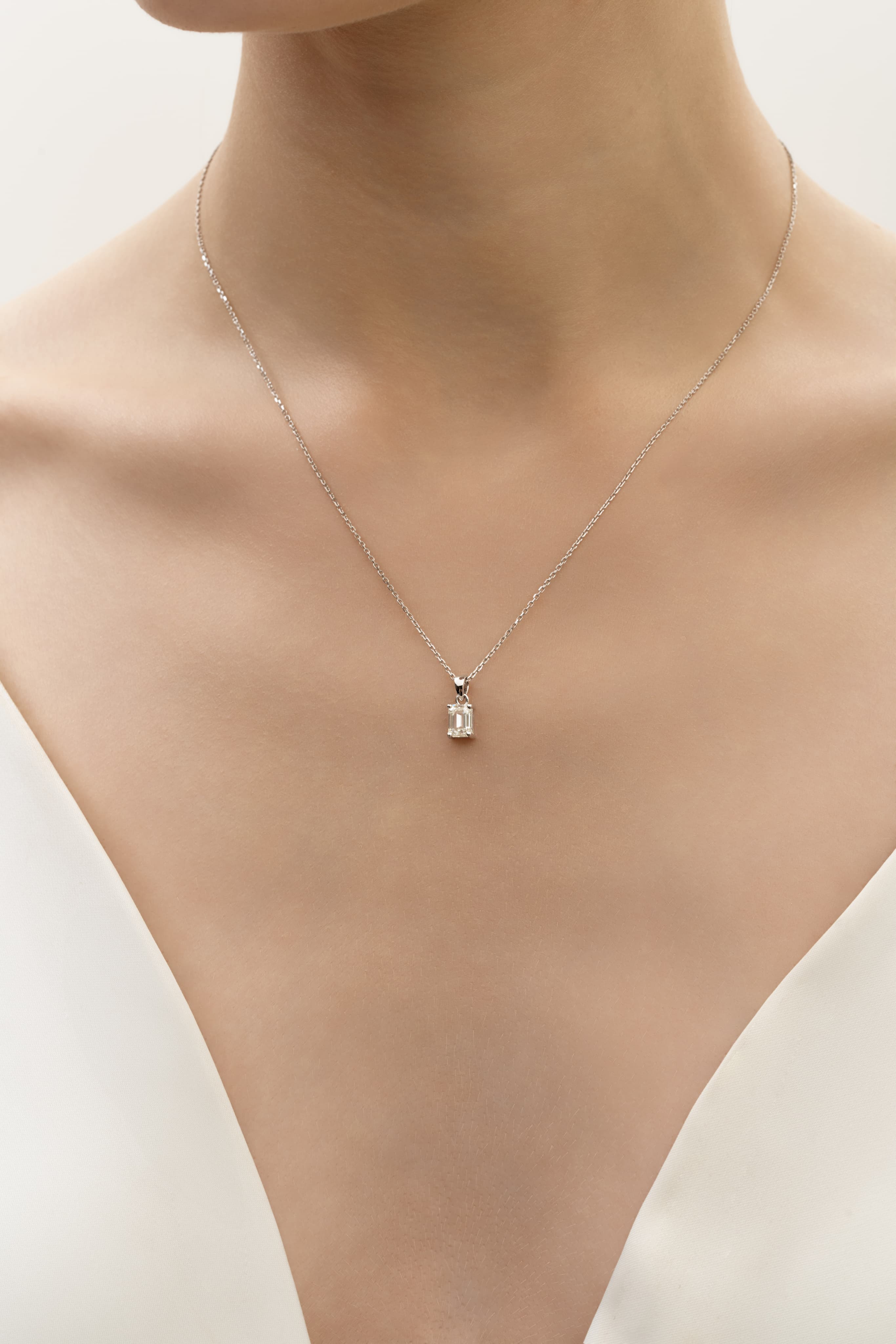 A minimal pendant designed to sit close to the collarbone.