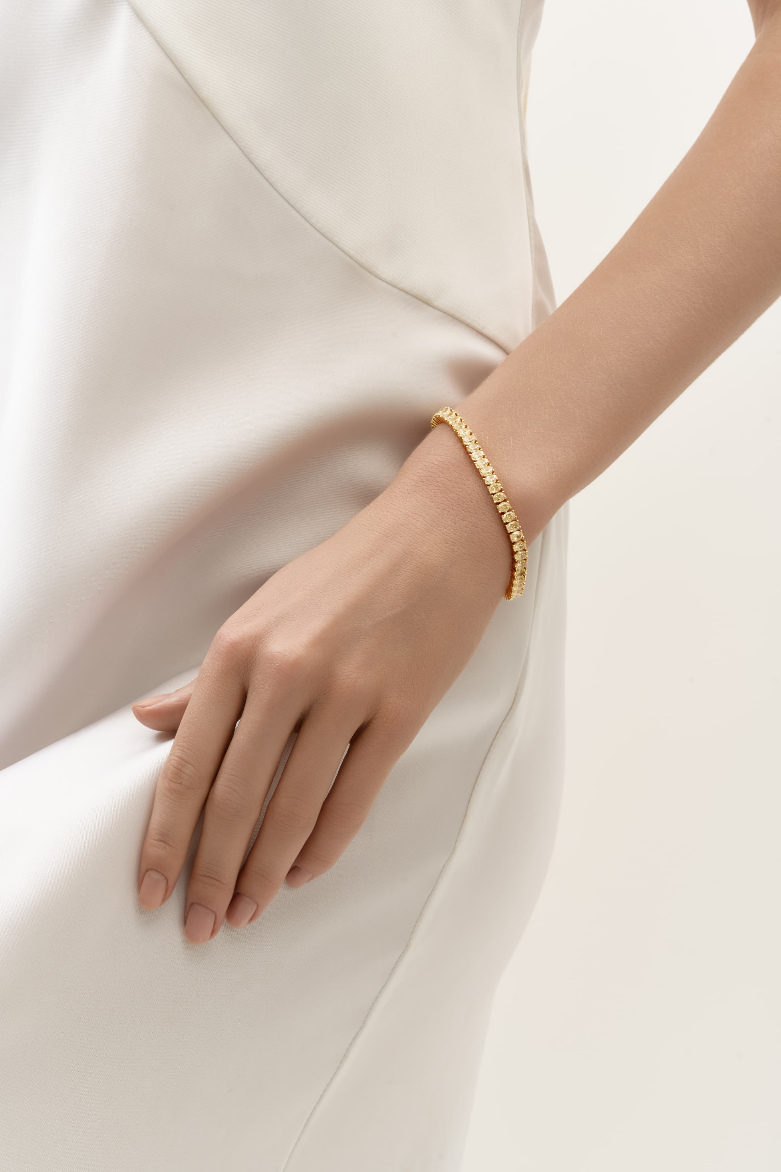 A flexible bracelet that pairs sculptural links with delicate shine.